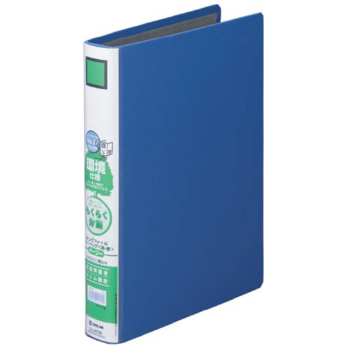 キングファイルの人気商品!とじ具を簡単、キレイに取り外し分別廃棄できます。しかも表紙にパーツが残りません。左右どちらからでも開けられる両開きタイプです。サイズ/A4タテ●寸法(タテ×ヨコmm)/307×243●背幅(とじ厚)/46mm(30mm)●収容枚数/約300枚●カラー/青●表紙材質/オレフィン素材貼り(芯材:再生紙)●穴数/2穴(80mmピッチ)●付属品/カラーインデックス1組(5色5山+扉紙)付き●機能/背見出し紙は抜き差し可能●開き種別/両開き●背紙種別/替背紙式●背紙有無/背見出し紙スクエアパターン4色入り(青・赤・黄・緑)