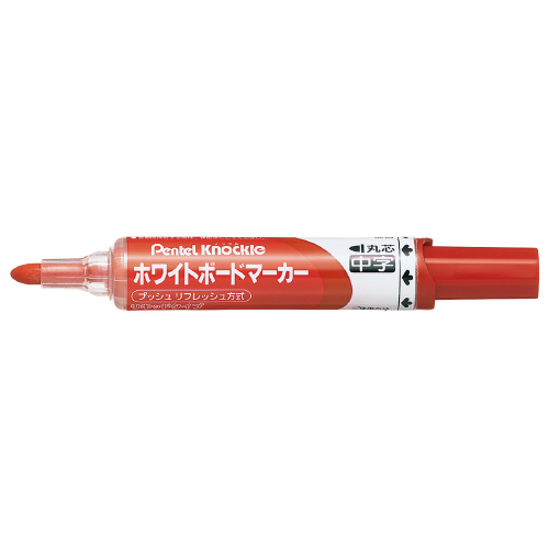 ホワイトボードマーカー ぺんてる ホワイトボード用マーカー ノックル 赤インキ(丸芯・中字筆記線幅2.1ミリ) EMWLM-B
