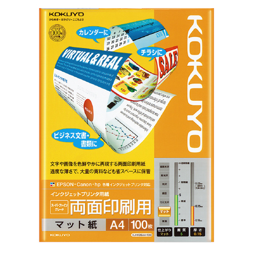 コクヨ インクジェットプリンタ用紙 両面印刷用 スーパーファイングレード A4 100枚 KJ-M26A4-100