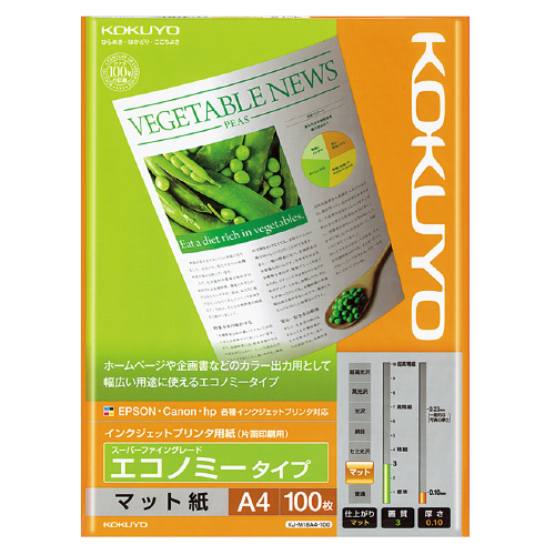 コクヨ インクジェットプリンタ用紙 エコノミー スーパーファイングレード A4 100枚 KJ-M18A4-100