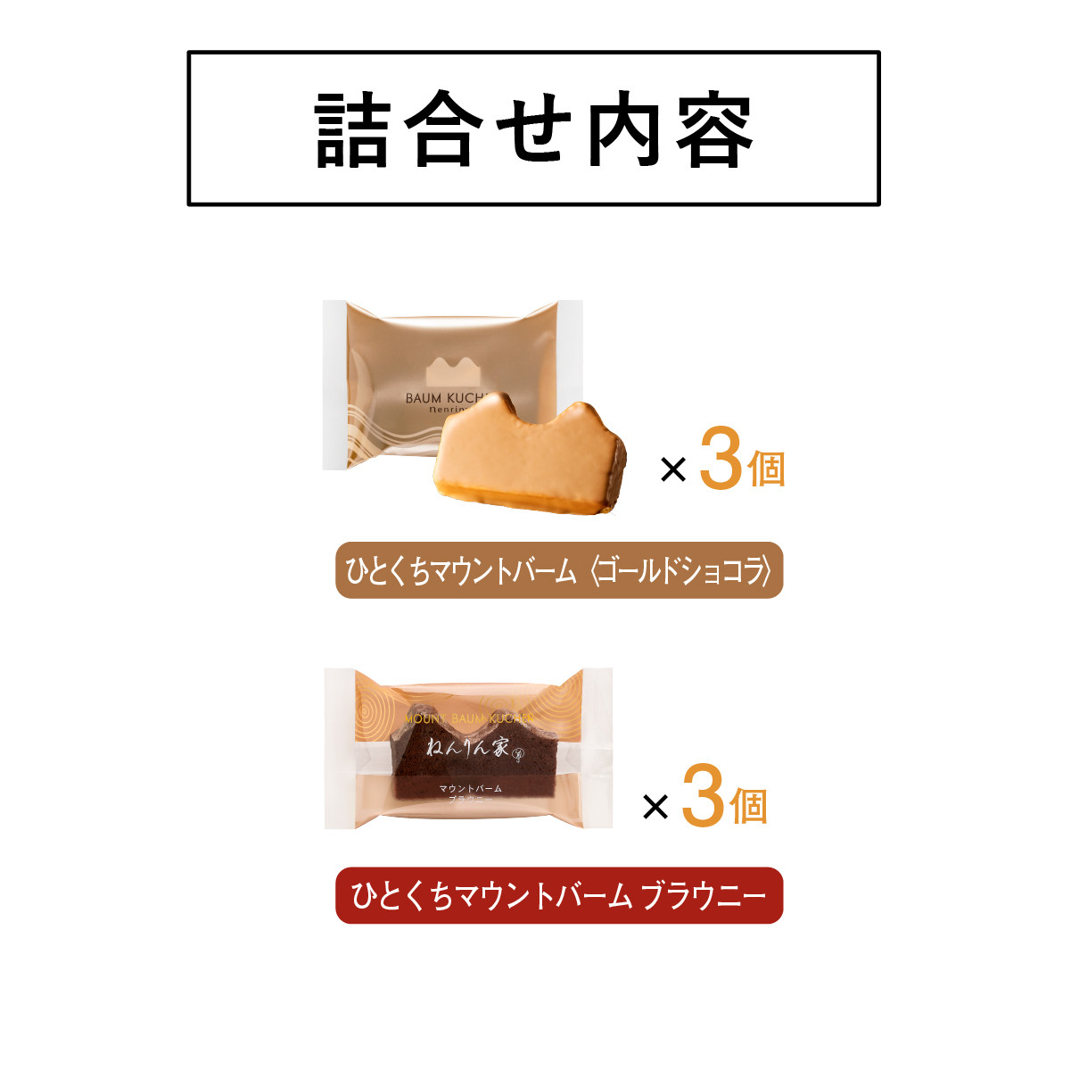 | 内容量 | ●ひとくちマウントバーム ブラウニー 3個 ●ひとくちマウントバーム〈ゴールドショコラ〉 3個 |