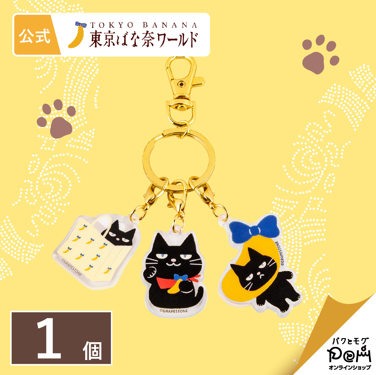 東京ばな奈ぶにゃんこ アクリルキーホルダー 1個 ギフト 可愛い グッズ 誕生日 東京ばな奈 東京バナナ ねこ 黒猫 ネコ 猫の日 キャラクター キーホルダー