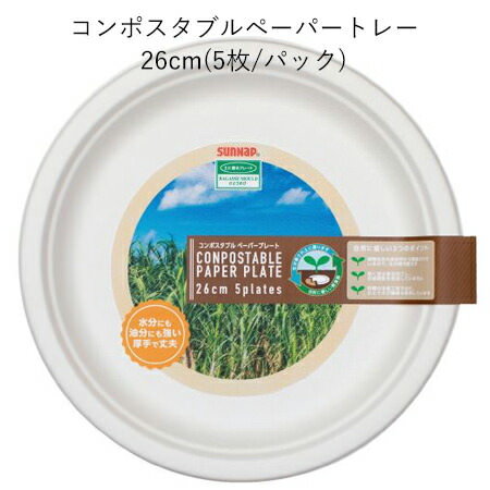 コンポスタブルペーパープレート 26cm (5枚/パック)【使い捨て アウトドア パーティー 容器 エコ 紙皿 ペーパートレー】