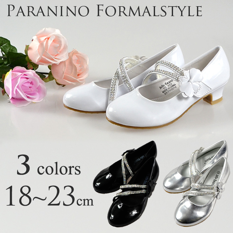 18cm 18.5cm 19cm 19.5cm 20cm 20.5cm 21cm 21.5cm 22cm 22.5cm Paranino パラニーニョ アメリカ USA 輸入雑貨 プレゼント 誕生日 卒園式 入園式 白 銀 黒 ラインストーン ヒール 靴 子供 用 キッズ こども 子ども 女の子 女児 ドレス ガールズ フォーマル リングガール 結婚式 発表会 卒業式 入学式 七五三