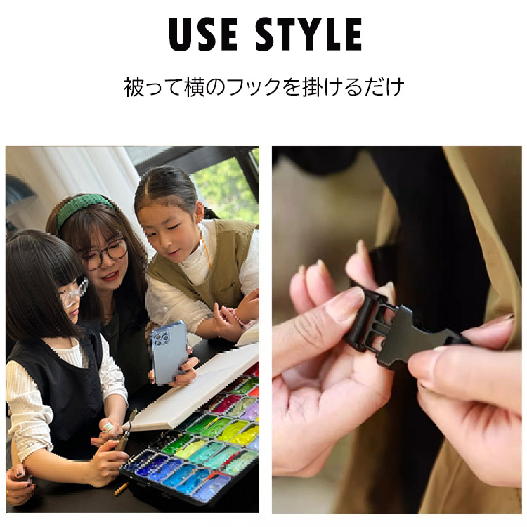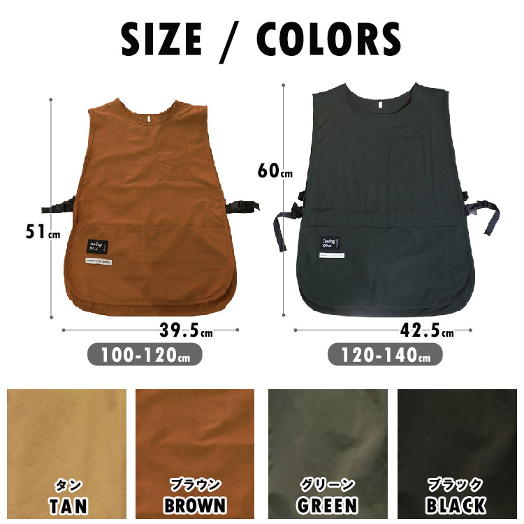 お絵描き、お食事からアウトドア、キャンプまで大活躍間違いなしの袖なしスモック