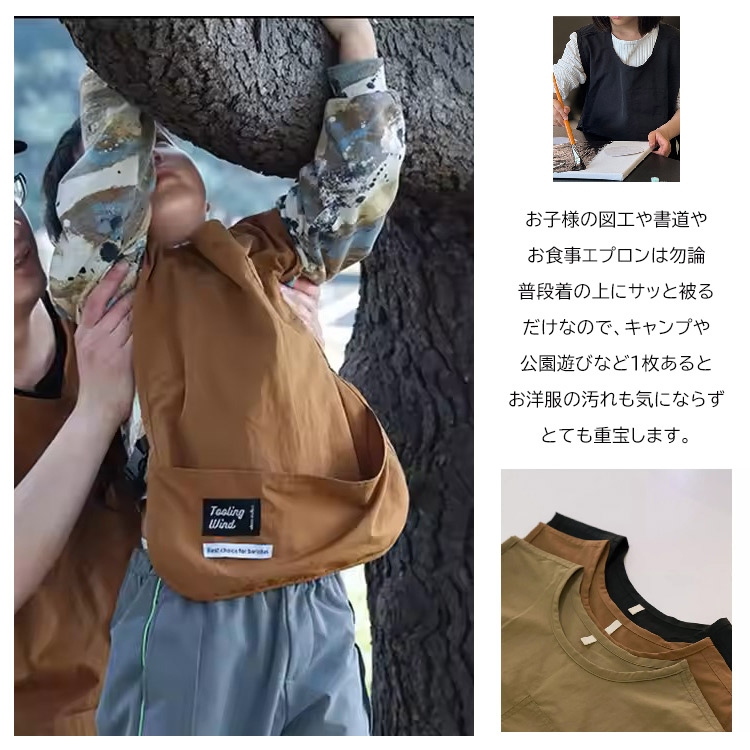 ベストエプロン キッズ エプロン 子供 被るだけ スモック 撥水防汚 女性 ショート 食事 図工 アウトドア キャンプ