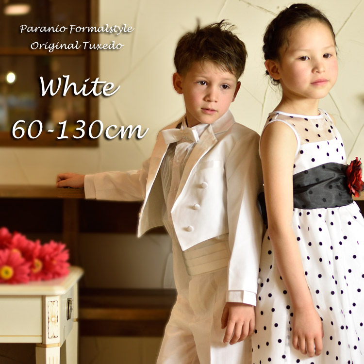 60cm 70cm 80cm 90cm 100cm 110cm 120cm 130cm Paranino パラニーニョ アメリカ USA 輸入雑貨 プレゼント 誕生日 卒園式 入園式60 70 80 90 100 110 120 130 白 キッズ 子供用 子ども 男の子 男児 ボーイ フォーマル スーツ リングボーイ 発表会 入学式 卒業式 結婚式 誕生日 七五三 カマー 燕尾服 モーニング