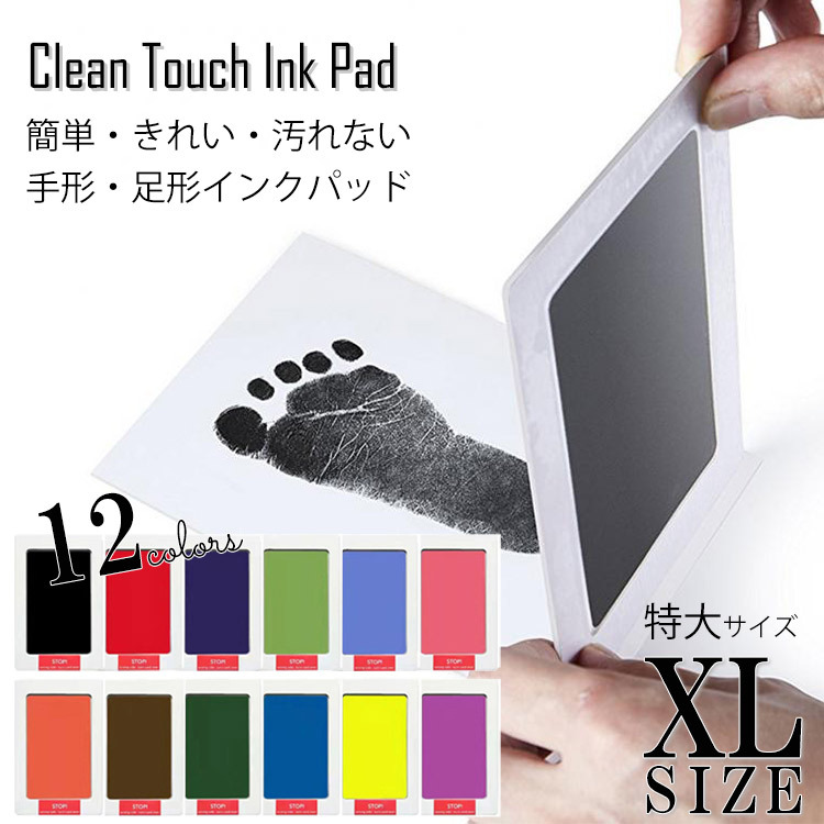 手形 足形 インク パッド 9.5×14.5cm 大判 手が汚れない ブラック レッド ブルー ピンク グリーン クリーンタッチ