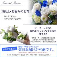 お供えオーダーアレンジメント・花束Mサイズ 季節のお花や人気の洋花を中心に制作いたします。 お供えの花もおしゃれに飾っていただけるフラワーギフトです! ▼商品内容 生花バスケットアレンジメント/生花花束 お取扱い説明書をお付けします。 ※画像の商品はイメージです。花材や色やデザインはご注文毎異なり花材の内容はおまかせとなります ※こちらの商品は通常バラはお入れしておりません。故人様が好きだった花などでお入れしたい場合はご注文時にお申し付けください。 ※お花のご希望がある場合は1週間程度余裕を持ってご注文ください。尚、入荷状況によりご希望に副えない場合がございます。ご了承ください。 ※お好みの色の指定があっても、多少それ以外の色(白やグリーンや淡い色など)の花も入ります。 使ってはいけない色・花などございましたら、必ず注文フォームの備考欄にご記入ください。 ※花の大きさや花付きや色、開花状況など、また手作りのため個体差がございます。予めご了承ください。 ▼サイズ アレンジメント:幅約25〜27cm、花束:長さ約60〜65cm (花材や器などに応じて変わります) ▼お届け日 営業日14時までのご注文及びお支払い確認で最短翌日お届け可 ※ご指定がない場合には入金確認後、最短でお届け致します。 ▼返品・交換について 商品が届きましたらすぐに箱を開けてご確認ください。 細心の注意を払っておりますが、万一お届けの際に不備がございましたら商品到着後2日以内に ご連絡いただくよう品質保証のしおりを同梱させていただいております。 恐れ入りますが、お花の状態を撮影していただき、お早めにメールかお電話にてご連絡ください。 レビュー投稿では対応が遅れてしまいますので、お届け後2日以内に当店に直接ご連絡をお願いいたします。 ▼その他 ・当店では全てギフト配送しております。金額のわかる明細等の伝票類はお入れしておりません。ギフトにも安心してご利用ください。 ・繁忙期は画像配信の対象外とさせていただきます。 ▼ご用途 生花 お悔やみ お供え ペット 枕花 四十九日 49日 命日 月命日 祥月命日 一周忌 三回忌 お盆 初盆 新盆 お彼岸 法事 法要 供花 お墓参り 墓花 仏花 仏壇花 仏壇用 お供え花 犬 供養花 自宅 贈り物 フラワーギフト 花ギフト お供えギフト ▼商品スタイル 生花 アレンジメント 花 アレンジフラワー アレンジ そのまま飾れる 卓上花 一対 花束 一対花束 1対 季節の花 おしゃれ 人気 洋花 洋風 和風 白グリーン 白ピンク 白黄色 白紫青 ▼サービス 最短翌日配達 配達日指定可 お届け日指定OK 日にち指定 花 送る 送料無料 品質保証 宅配 通販 メッセージ 名札 立札 ラッピング ギフト配送 即日発送 ラッピング無料 メッセージカード無料 メッセージカード付き 画像配信 あす楽 |