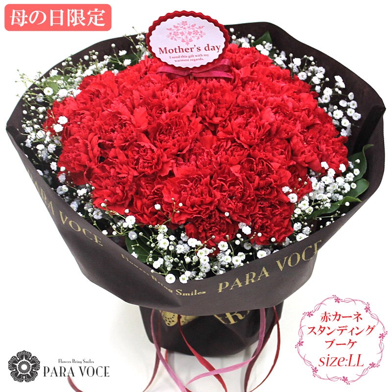 母の日 花 ギフト 母の日 ギフト 母の日 カーネーション お洒落 花瓶が要らない花束 赤いカーネーションのスタンディングブーケ LLサイズ 48本