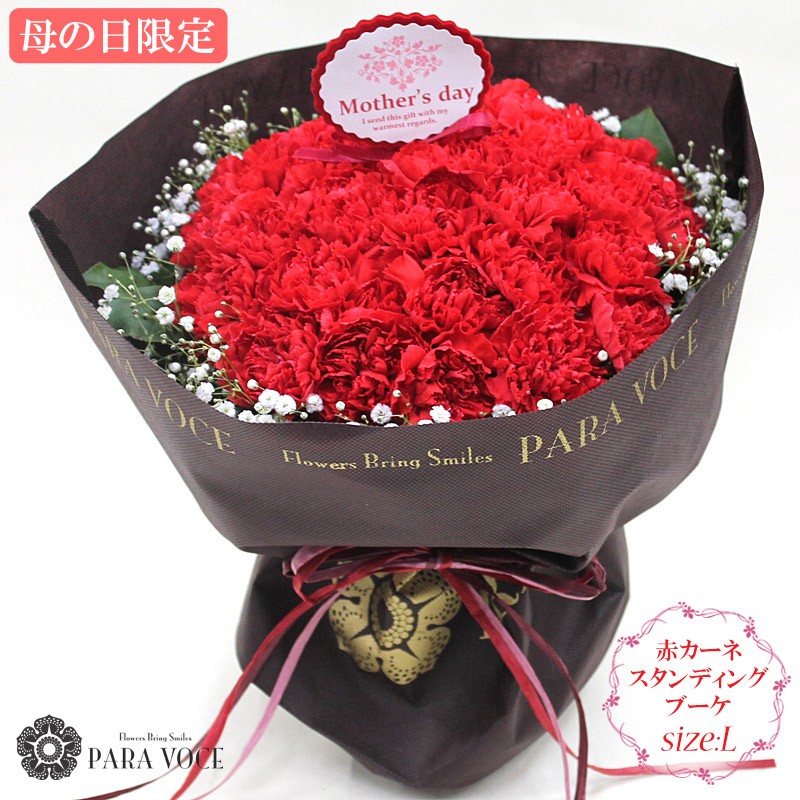 母の日 花 ギフト 2025母の日ギフト 母の日 カーネーション 花瓶が要らない花束 赤いカーネーションのスタンディングブーケ Lサイズ 36本