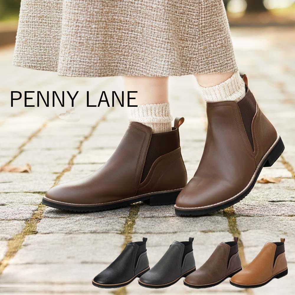 PENNYLANE ペニーレーン ワンヒールゴムショートブーツ 合成皮革 レディース カジュアル 履きやすい ワンヒール おしゃれ 新作 人気 3188