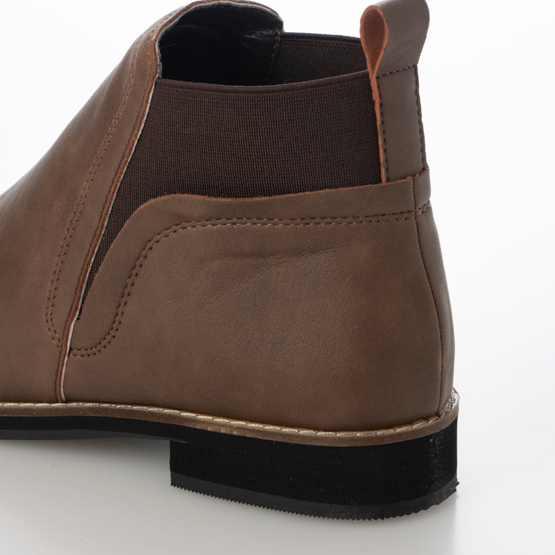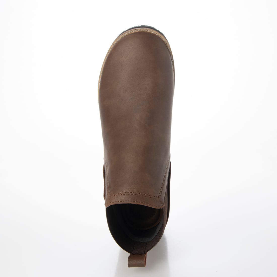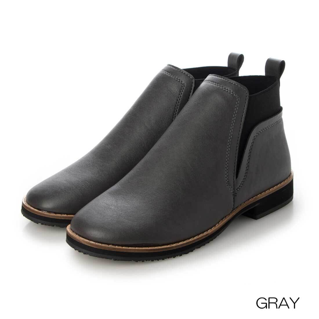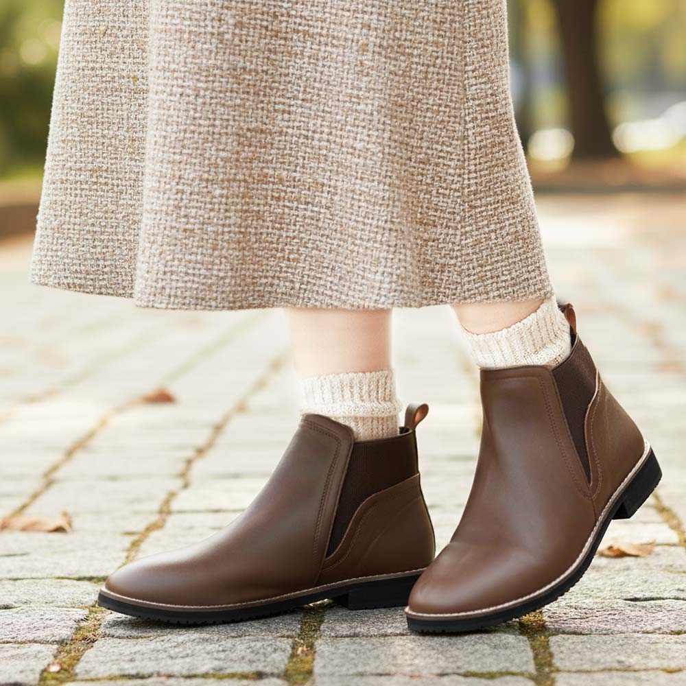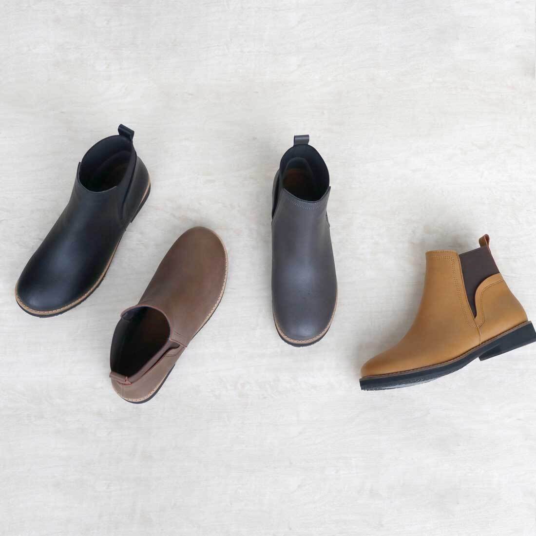 深めの履き口の直線的なデザインのショートブーツですが、後ろがゴム仕様でストレスなくするりと足が入りゆったりと履くことができます。