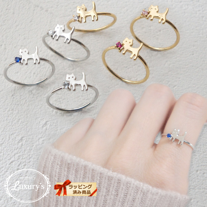 リング 指輪 ニッケルフリー お散歩 猫 ねこ ネコ キャット 金属アレルギー スワロフスキー レディース ファッション かわいいLuxury's プレゼント ギフト
