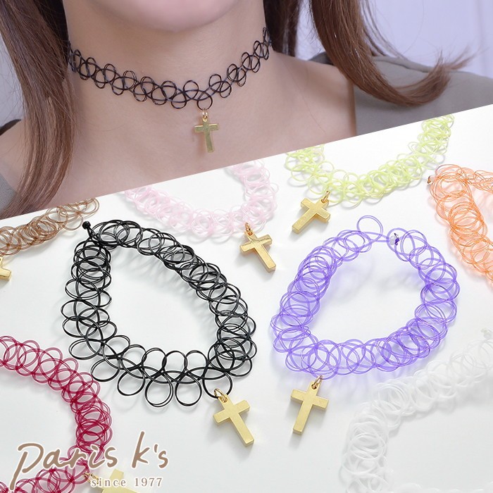 121217UP 130401UP クロス 十字架 タトゥー ラバーネックレス 伸びる 伸縮