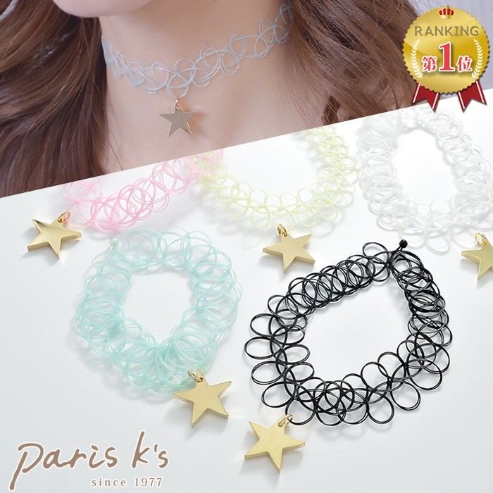 130507UP 130715UP ネックレス ペンダント チョーカー スター ほし 星型 タトゥー テグス ゴム パステル ミルキー