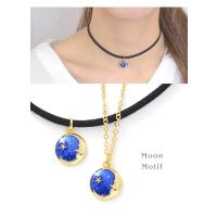 【201802UP】,ネックレス,チョーカー,チェーン,チェーンネックレス,チョーカーネックレス,月,ムーン,三日月,星,スター,ラメ,ラウンド,ゴールド,ブルーグリーン,ブルー,青,グレー,レジン,プラネット,ギャラクシー,宇宙,夜空,レディース,