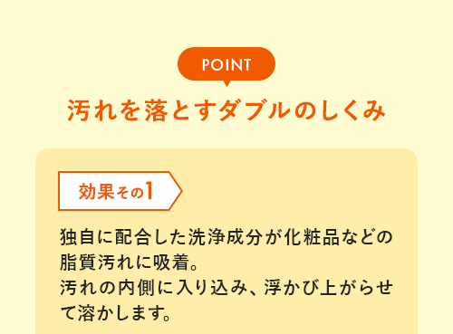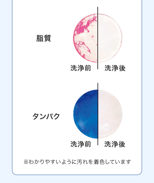 界面活性剤と研磨剤の力でタンパク質、脂質、化粧品などの頑固な汚れをすっきり落とします。汚れが気になる場合は毎日お使いください。