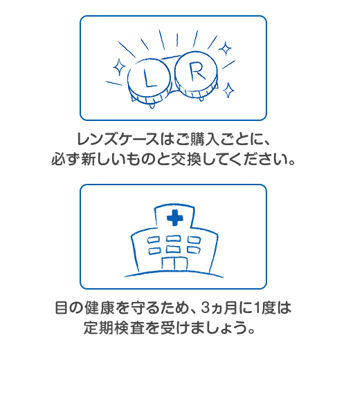 ●使用説明書に記載された使用方法や注意事項を必ず守ってください。正しいレンズケアを行わないと、アカントアメーバ角膜炎等の重篤な眼感染症や眼障害につながるおそれがあります。