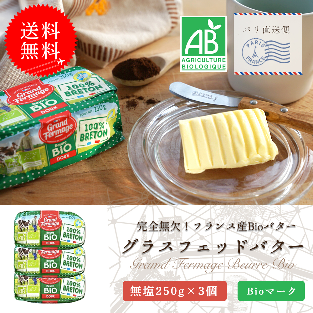 送料無料 グランフェルマージュ 無塩 250g 3個セット まとめ買い 無塩バター 発酵バター オーガニック バターコーヒー