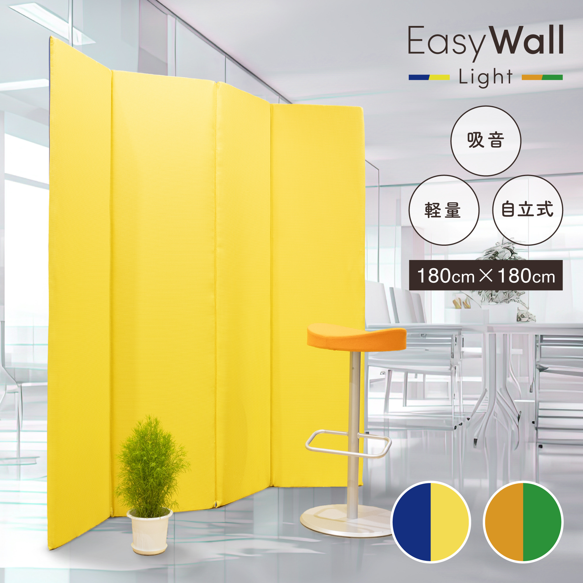 ![]() 広げるだけで簡単に自分だけの空間を作り出す『EasyWall Light/イージーウォール ライト』。 視覚的、聴覚的に周りの情報を軽減・遮断し、独立した空間を築くことができます。 テレビ・オンライン会議での背景の目隠し、集中して作業するための空間作り、 非常に多くのシチュエーションで柔軟にご利用いただけます。 銀行、証券、保険などの金融機関様をはじめとした個人情報や機密事項の漏洩といったリスクに敏感な事業者様もリスクを軽減できるため、 セキュリティを求められる事業者様には特にご支持いただいています。 オープンスペースに個別の控室を即席で作ることもできます。簡易の更衣室やパウダースペースを作ったり、 オープンスペースの中にセミパーソナルスペースを作り出すのは特におすすめです。 |