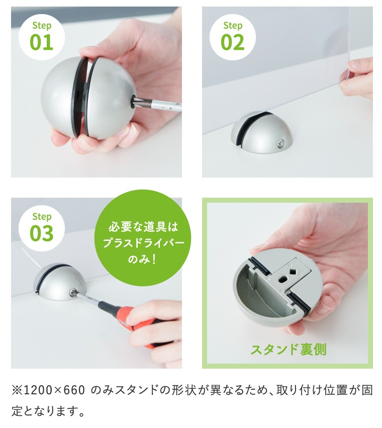 ※1200×660mm のパーテーションのみ、スタンドの形状が異なります。