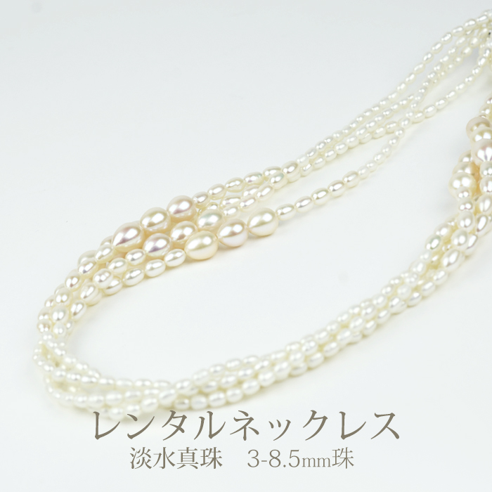 ネックレスレンタル 最大4日間 淡水レンタル 淡水真珠 3mm〜8.5mm 4連 デザインネックレス005 往復送料無料