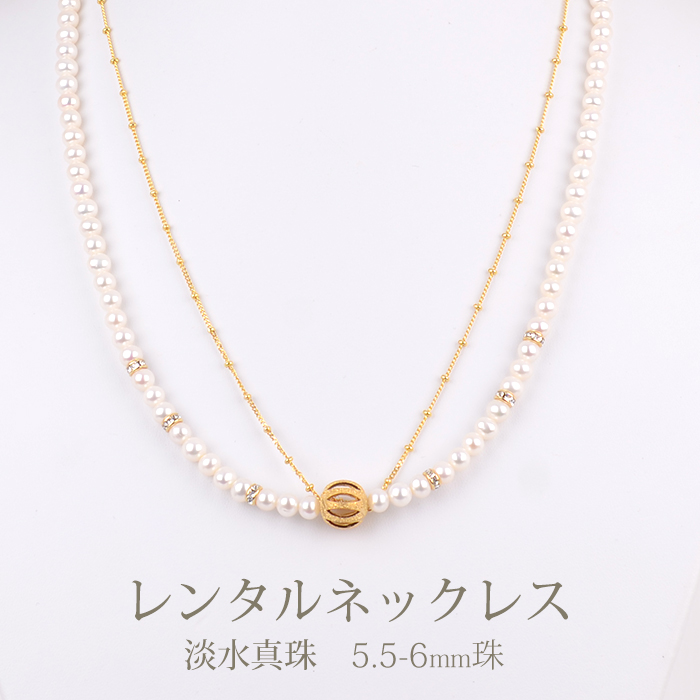 ネックレスレンタル 最大4日間 レンタル 淡水真珠(5.5mm-6mm珠) ネックレスゴールド 029 往復送料無料