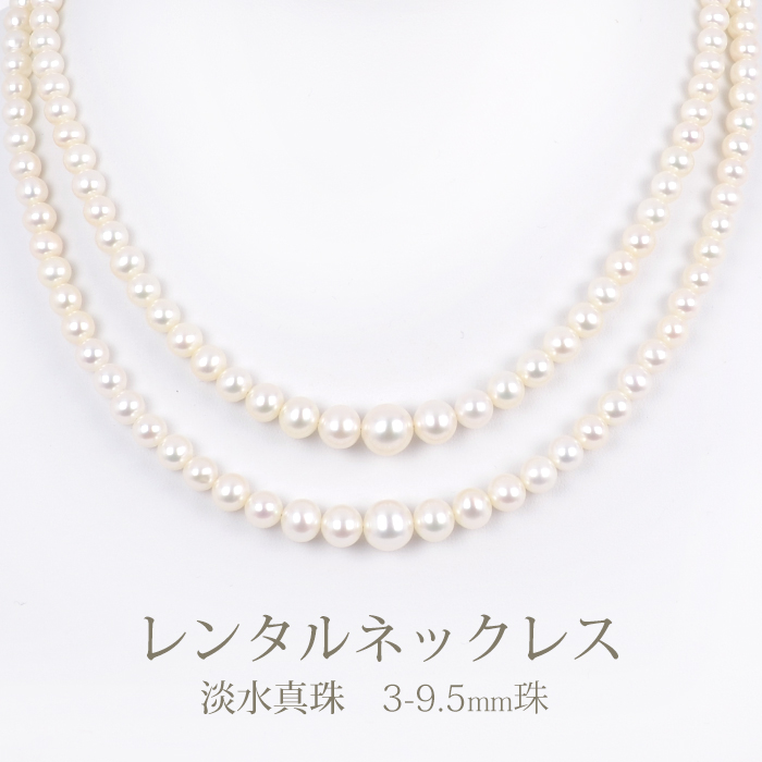 ネックレスレンタル 最大4日間 レンタル 淡水真珠(3-9.5mm珠) グラデーションデザインネックレス 036 往復送料無料