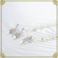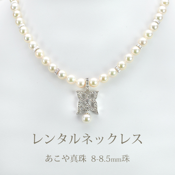 ネックレスレンタル 最大4日間 真珠ネックレス あこや本真珠(7mm-7.5mm珠) イヤリングセット蝶モチーフ 006 往復送料無料