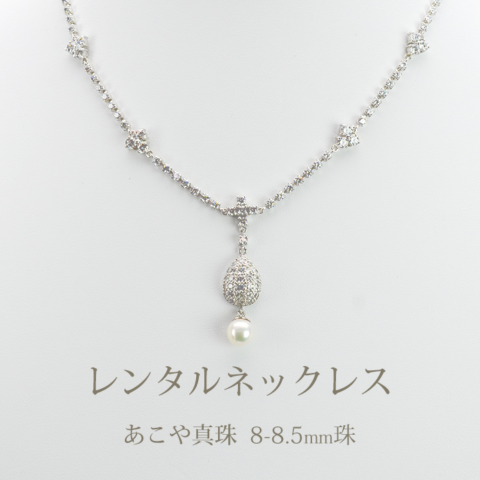 ネックレスレンタル 最大4日間 Y字ネックレス あこや本真珠(8mm珠) イヤリングセット 009 往復送料無料