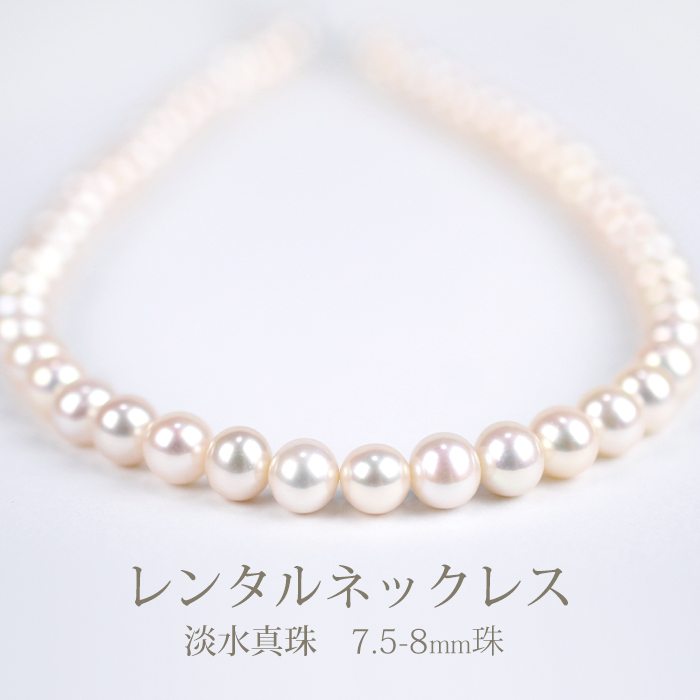 ネックレスレンタル 最大4日間 淡水真珠 7.5mm〜8mm ネックレス イヤリングセット 046 往復送料無料