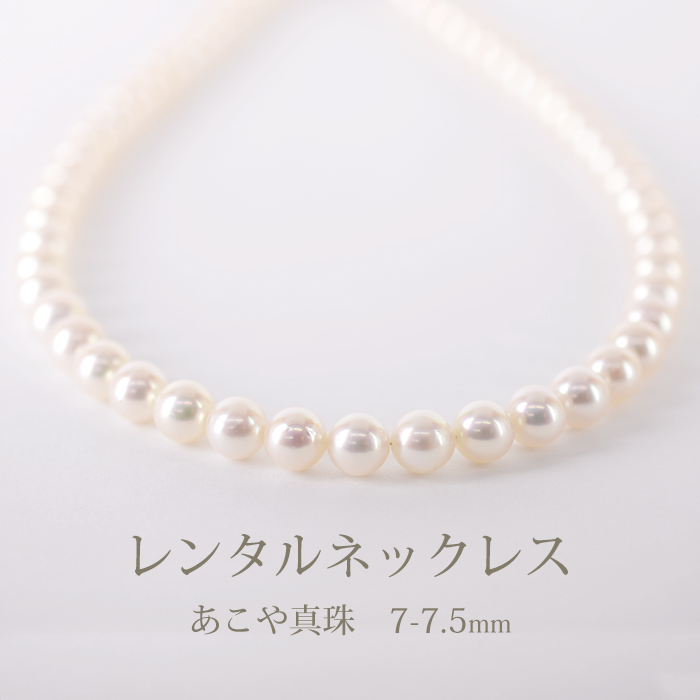 ネックレスレンタル 最大4日間 定番 あこや本真珠 ネックレス & イヤリング/ピアス セット(7mm-7.5mm珠) 048 往復送料無料