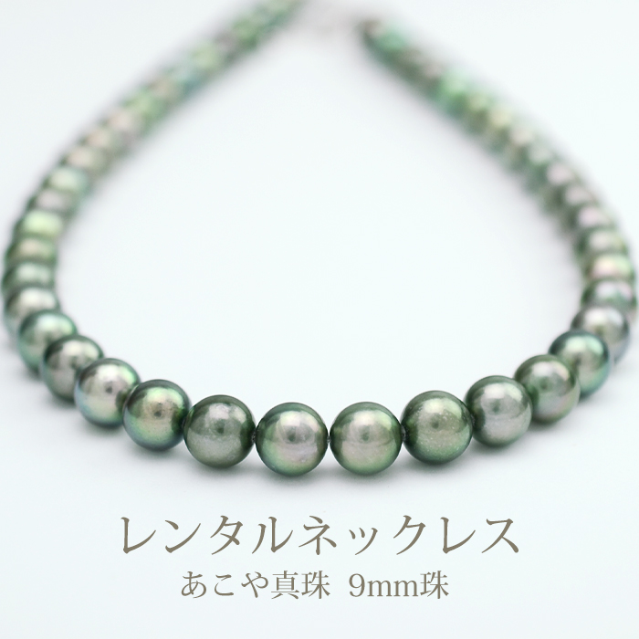 ネックレスレンタル 最大4日間 あこや真珠 (9mm珠) 一連 ネックレス ブラックパール イヤリング/ピアスセット 070 往復送料無料