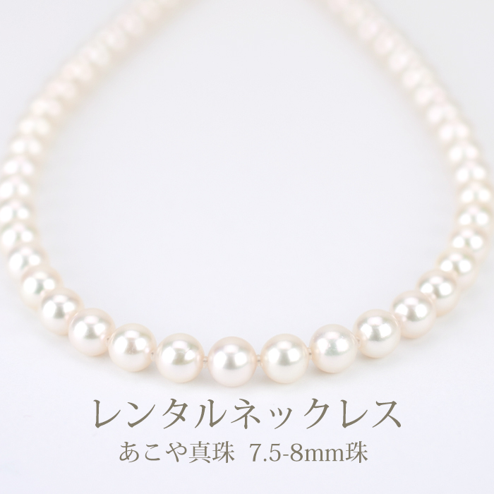 ネックレスレンタル 最大4日間 ネックレス 077 あこや本真珠(7.5mm-8.0mm珠) イヤリングセット077 往復送料無料