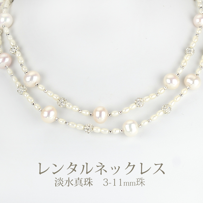 ネックレスレンタル 最大4日間 真珠 淡水真珠 デザインロング ネックレス 017 イヤリングセット往復送料無料