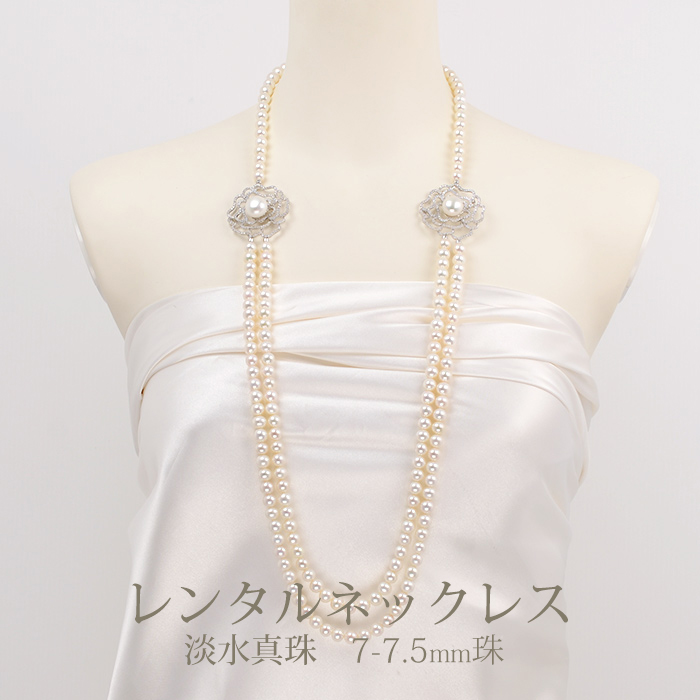 デザインロングネックレス 最大4日間レンタル 真珠ネックレス 淡水 フラワー 025 往復送料無料