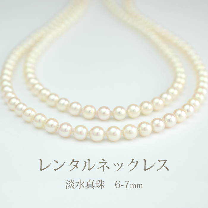 ネックレスレンタル 最大4日間 淡水真珠 6mm〜7mm ロング ネックレス イヤリングセット 038 往復送料無料