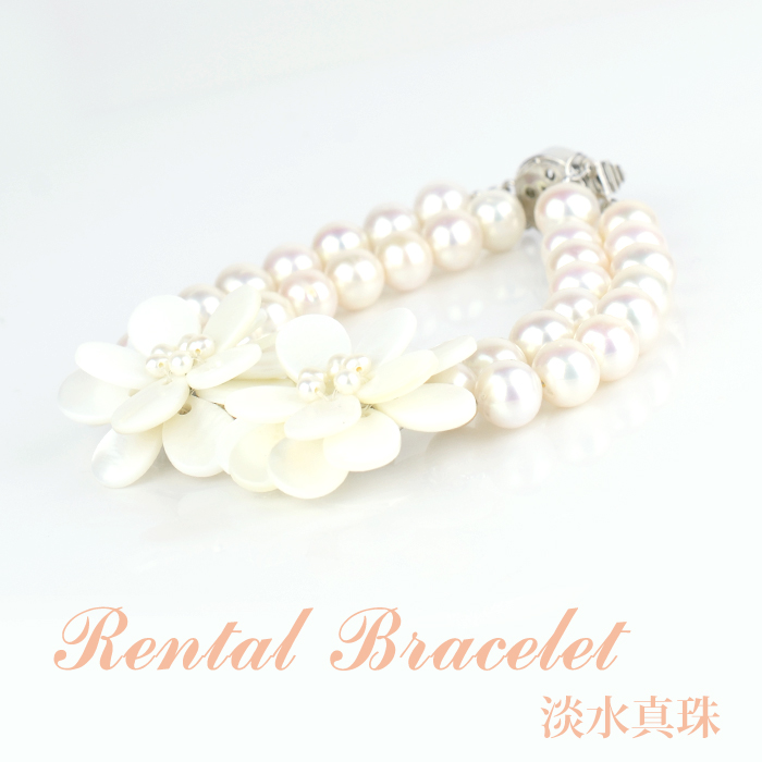 ブレスレットレンタル 最大4日間 淡水真珠 ブレスレット 014 淡水レンタル 淡水真珠 シェルデザイン 2連ブレスレット 二連 往復送料無料