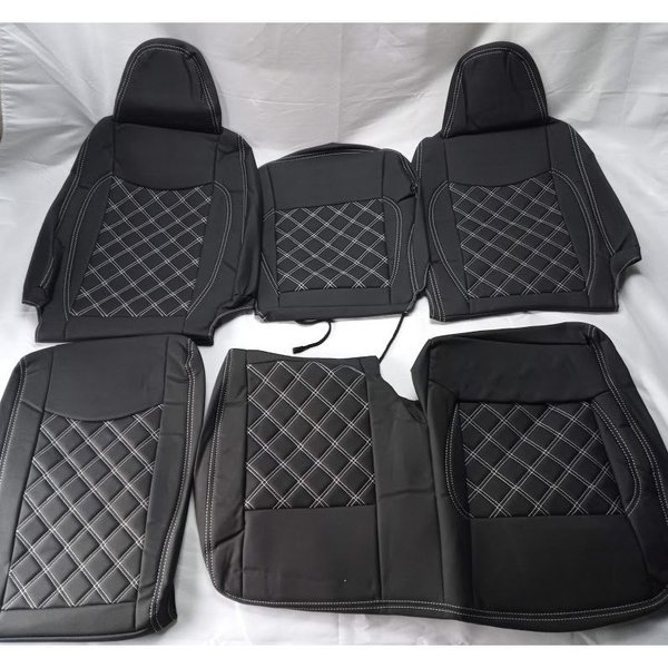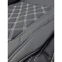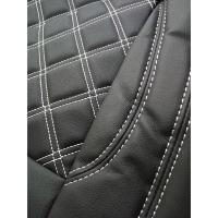 200系 ハイエース DX フロント シートカバー 3人用 PVCレザー ホワイトステッチです。