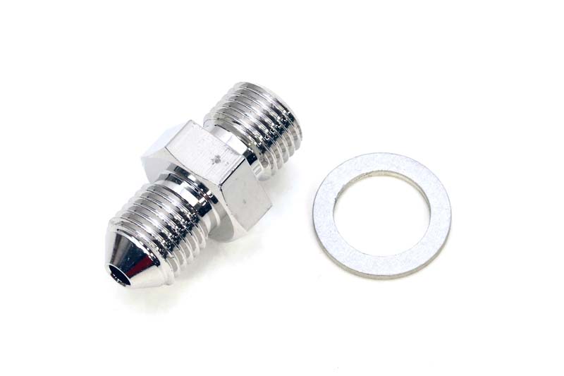 キャリパーやマスターからストレートにホースを取り出すためのアダプター。