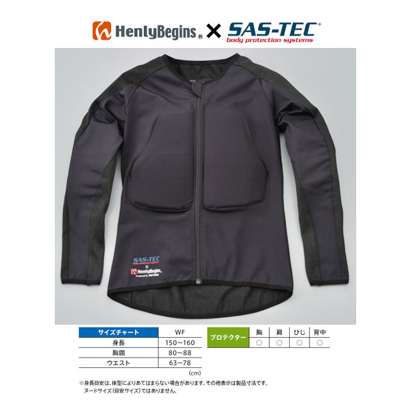 衝撃時に瞬間硬化するSASTEC製プロテクターを胸部・ひじ・肩・背中に装備することで、
