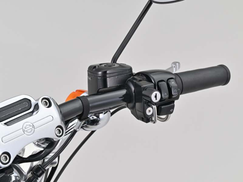 38〜40mmピッチのハーレーダビッドソン純正ブレーキマスターシリンダーに取り付け可能なヘルメットホルダー。