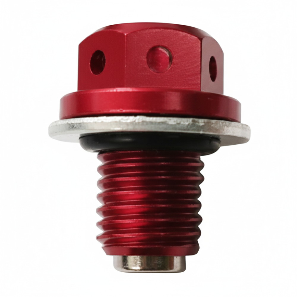 特長:マグネット内臓でエンジンオイル中の鉄粉を吸着できる、オイルドレンボルトです。ドレンボルト先端部分にマグネットを搭載、エンジンオイル内の鉄粉を吸着させ、クリーンに保ちます。 軽量高強度アルミ合金を採用し、アルマイト仕上げで耐腐食性を向上させたほか、鮮やかなワンポイントパーツとしても機能します。 ワイヤリング用の穴あけ加工も行っておりますので、コースにオイルを撒かないようにしておきたいレースや走行会でも役立ちます。 取付・交換も簡単なアイテムです。