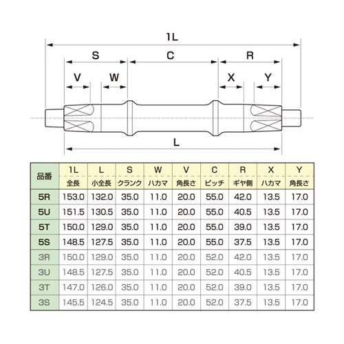 商品サイズ:全長153.0mm ギヤ側42.0mm ピッチ:55mm
