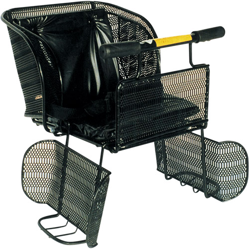 特長:2点式シートベルトでお子様を守ります。ドライバーとスパナで簡単取付が可能。 サイドのカバーを前に倒すとカゴタイプになります。
