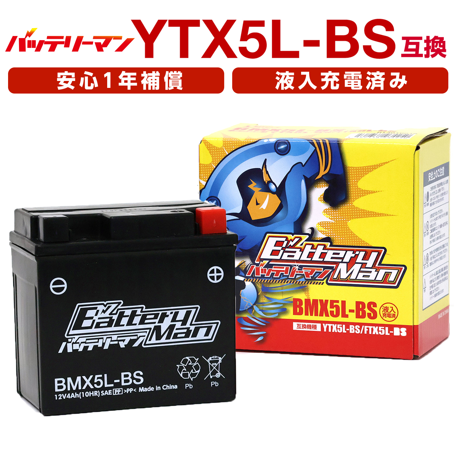 商品名:BMX5L-BS(YTX5L-BS 互換)(液入充電済)