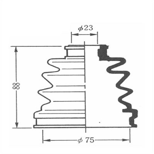 特長:主にFF車、4WD車、4輪独立懸架車などのドライブシャフトの関節部分の保護ブーツです。 ブーツは外部からの水分や汚れを保護すると同時に、内部では関節部の潤滑グリースを保持します。 経年劣化などでブーツが破れますと、潤滑グリースが外部へ飛散して、油切れや水分による錆が発生し、最悪は関節部が焼き付いてしまいます。 関節部から異音が出てからでは遅いので、ブーツに破損がないか定期的に点検することをおすすめします。