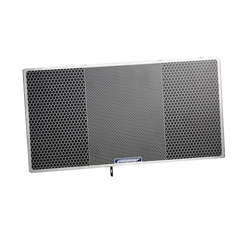 特長:フロントタイヤから巻き上げられた小石やゴミ、ライトめがけて飛んでくる昆虫...etc これらはアルミのフィンでできているラジエターコアへダメージを与えます。 フィンが潰されることによって冷却効果が失われ、場合によってはウォーターラインを破損しクーラント漏れを起こす危険も・・・ エッチングファクトリーのラジエターコアガードは、ラジエターに対して最も過酷とも言える真夏の8時間耐久ロードレースを中心に幾度となくテストを繰り返してきました。 メッシュパターンの配置、メッシュラインの太さ、そして開口率はレースからのフィードバックがぎっしりと詰まっています。 ・中央部分は細かく、両サイドは粗いヘキサゴンメッシュパターン。 これはフロントタイヤからスピンオフされた小石やゴミをタイヤ幅に合わせた中央部の細かいメッシュが 確実にガード。両サイドの粗いメッシュは冷却効率と保護性能という相反するテーマの両立を考慮 された開口率になっています。 ・材質の選択にも理由があります。 アルミやチタンの場合、板厚を下げる(強度を下げる)ことでしか実現できないメッシュライン幅を、ステンレス(SUS304 0.8t)を採用することにより理想のライン幅で強度を下げずに実現。 これらを踏まえたコアガードには、性能の維持するためのアイテムとしてだけではなく、さりげなく美しさをアピールするドレスアップ効果も兼ね備えました。