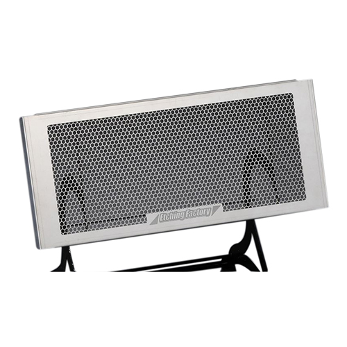 エッチングファクトリーは主にオートバイ用のラジエーターコアガードを扱う、冨士精密工業株式会社が展開するブランドです。 フォトエッチング技術を駆使し、オートバイの性能とデザイン性を高める製品を提供。 20年以上にわたり、鈴鹿8時間耐久レースを通じて製品開発を行い、その成果を製品に反映しています。